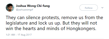 "I hadn't felt this kind of fear in a long time," wrote Wong, adding that the last time he felt like his "heart was going to jump out of his chest" was when he was arrested the day before the Umbrella Movement protests began.